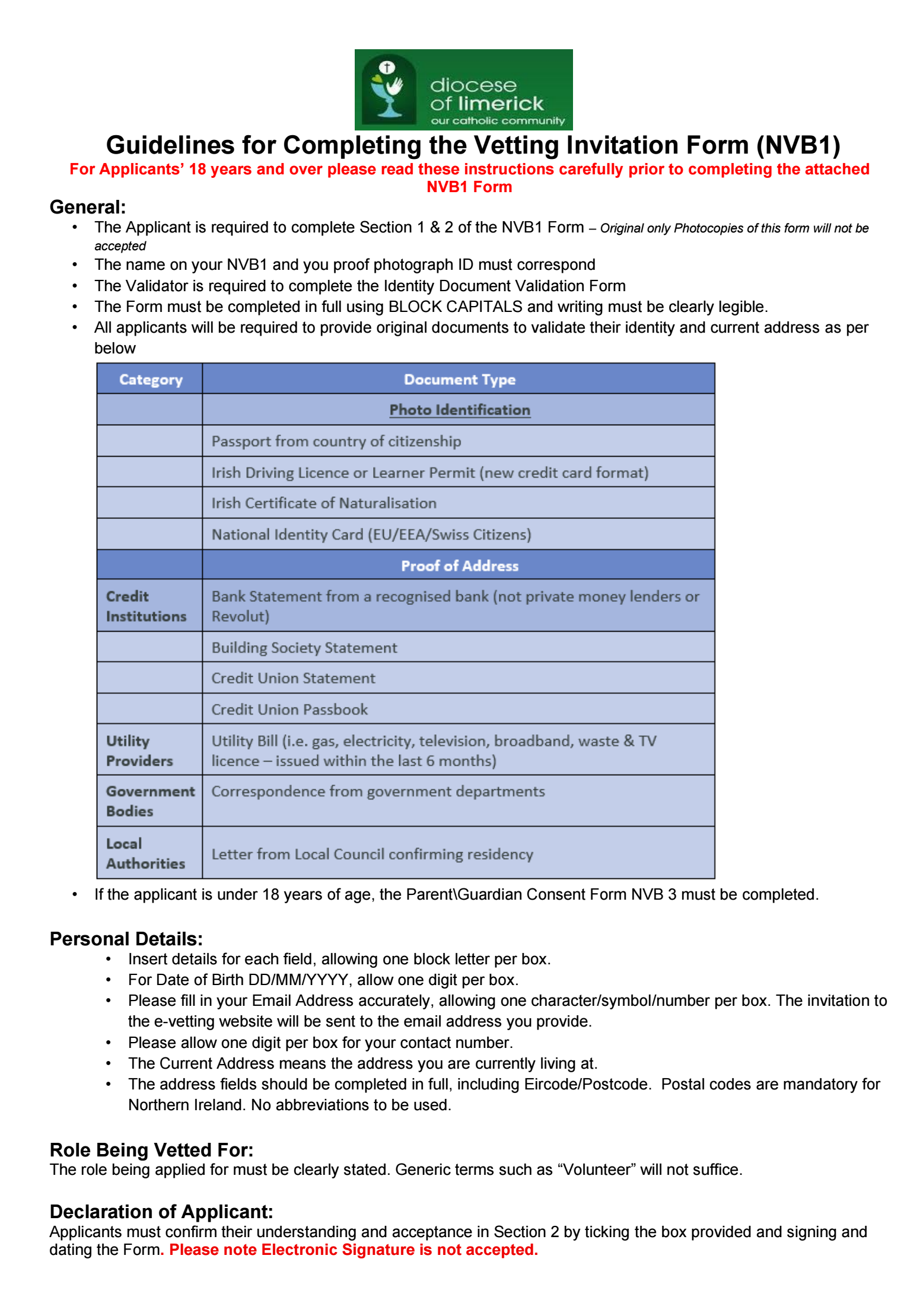 Enquiries should be directed to the Diocesan Vetting Service at vetting@limerickdiocese.org